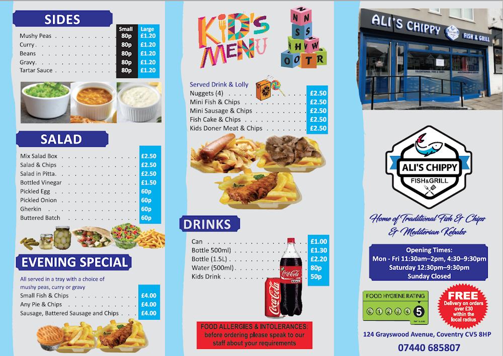 Coventry’s Ali’s Chippy is a beloved spot that captures the essence of traditional British takeaway. Its address, 124 Grayswood Ave, is easy to find for anyone craving classic fish and chips or succulent kebabs. I love mentioning its accessibility; parking is hassle-free, with free street parking right outside. This casual diner operates every day, adapting well to various meal times, making it a convenient choice whether you're rushing for lunch or relaxing for dinner.